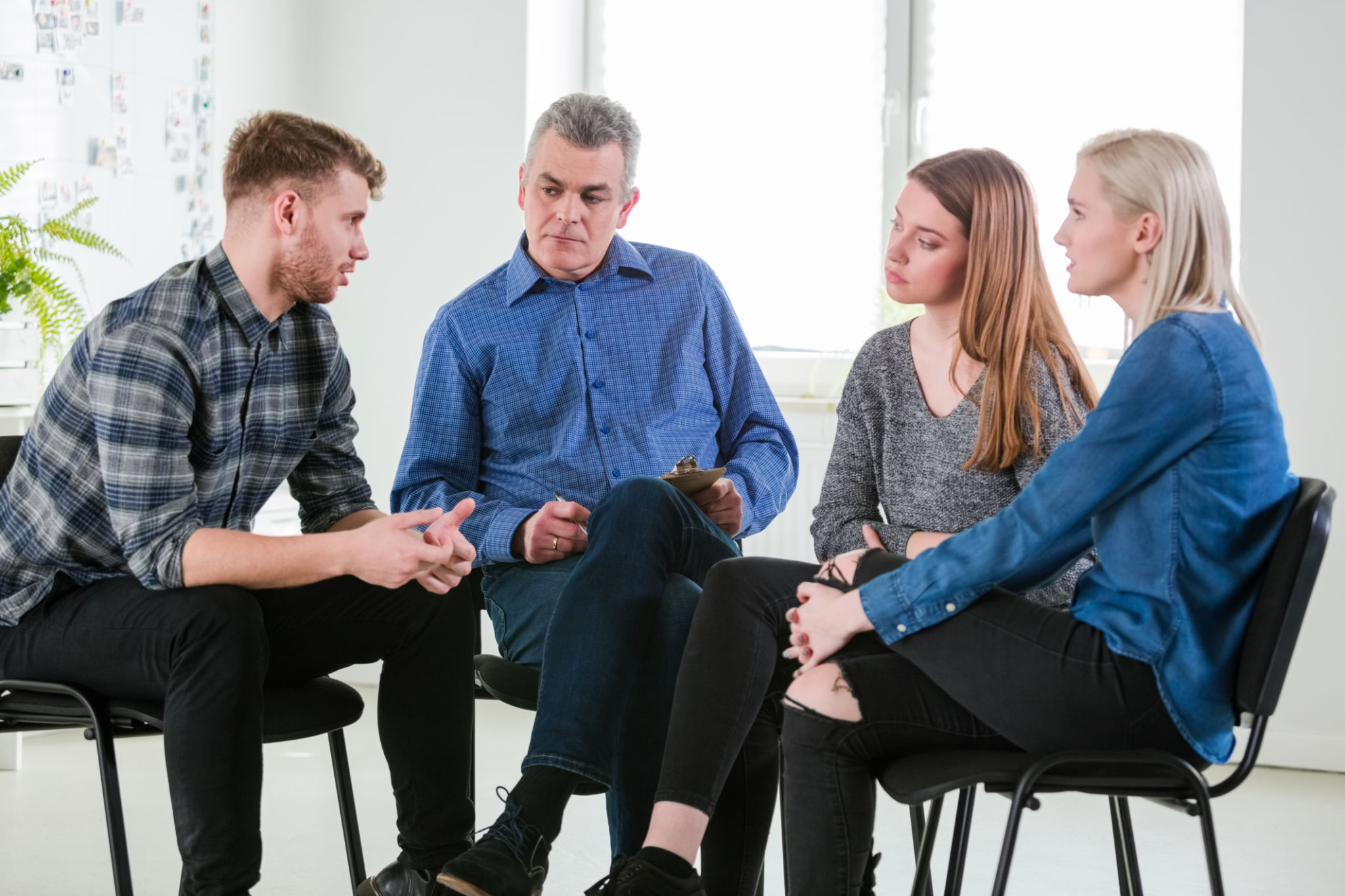 Sesiones grupales que promueven la comunicación abierta y el aprendizaje compartido.